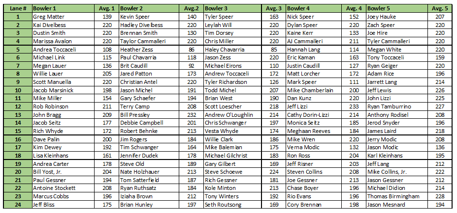 - Team Nick Speer – Greg Matter, Kevin Speer, Tyler Speer, Nick Speer, & Joey Hauke